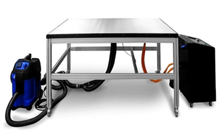 Вакуумные столы с ультразвуковым увлажнителем. Создают однородный вакуум на всей рабочей поверхности, позволяют контролировать процесс выравнивания живописи и дублировочного слоя. Столешница перфорированная, что упрощает мытьё полотна.